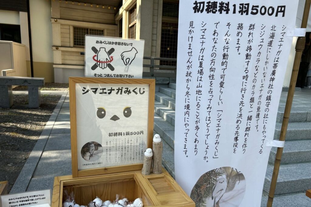 かわいらしいおみくじがあると聞いて、帯広神社にやってきました。「雪の妖精」と呼ばれるシマエナガのおみくじです。来てみると、おみくじのほかにも、シマエナガのお守りや御朱印帳、絵馬、境内にあるカツラの木の葉を模したハート型の縁結びの絵馬、「隠れキャラ」のウサギ探しなど、心をくすぐる「かわいいポイント」がたくさんありました。
