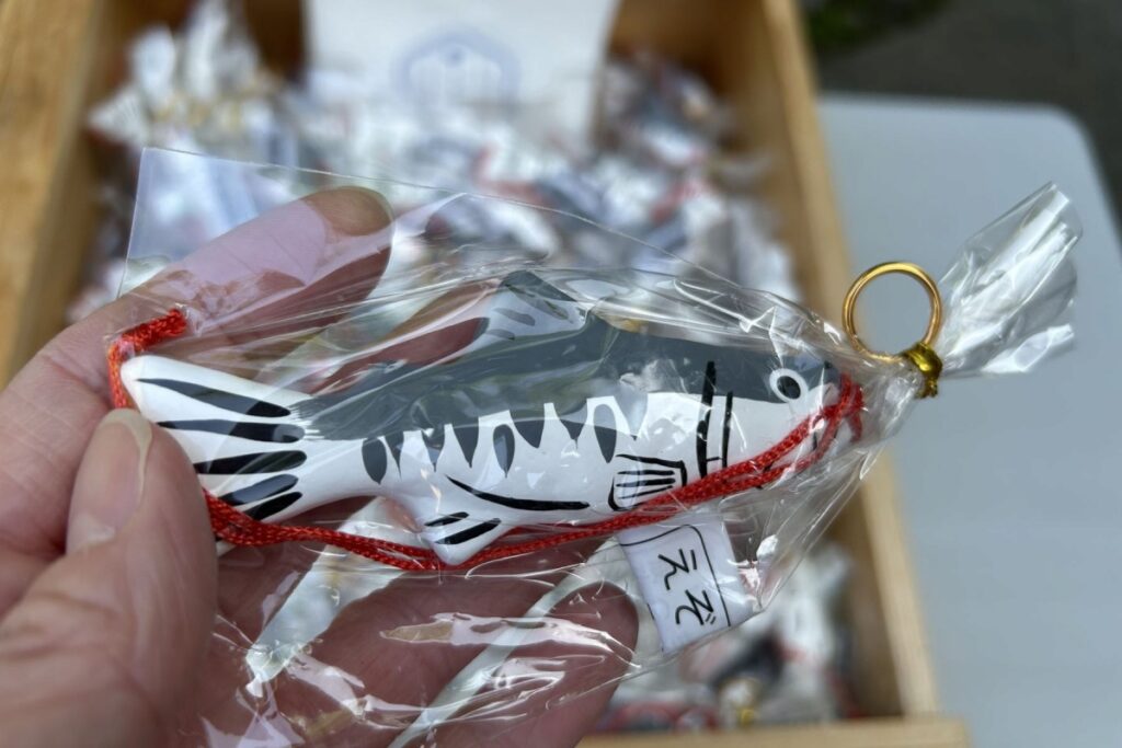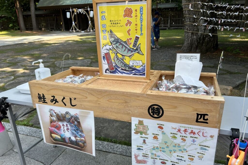 帯広神社には、もう一つ、変わりみくじがあります。道内各地の特産品をモチーフにした「えぞみくじ」です。根室金刀比羅神社の発案で、2016年から根室と函館の神社が始めたおみくじで、今は道内15カ所の神社で実施しています。帯広神社はサケマス。「魔を『避け』て福が『増す』」とうたっています。