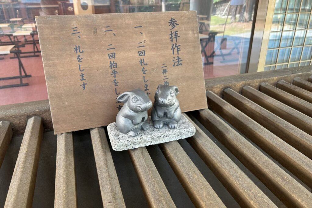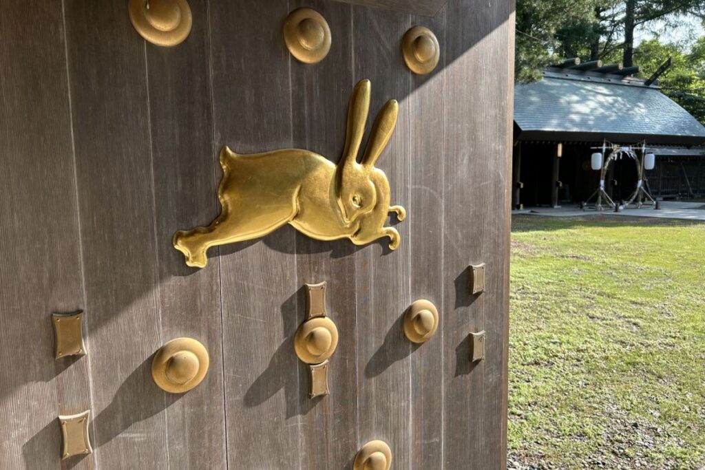 このうち大那牟遅神は出雲大社のご祭神「大国主命(おおくにぬしのみこと)」と同じ神で、大黒様ともいわれます。神話「因幡の白うさぎ」でうさぎを助けた神様です。これにちなんで、帯広神社には境内のあちこちに「隠れウサギ」がいるのです。2010年の御鎮座100周年を記念し、「卯」の方角である東門に金色のウサギを取り付けたのが始まりです。今では東門と賽銭箱の上など計5カ所にウサギが置かれています。境内を散策がてら、探してみるのも楽しいですよ。