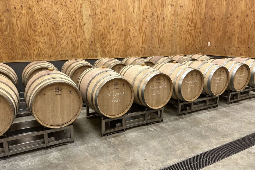 芽室町では2015年から、ブドウの栽培をスタート。18年に十勝ワインに醸造を委託して初めてワインを生産し、19年も委託醸造しました。20年にワイナリーを開設し、生産者別の醸造も始めました。例えば、2020年の「かなえる 山幸」は、エチケットをよく見ると、「KIKUCHI HIDEKI」「KURODA YOSHITSUGU」などと、生産者の名前が入っています。醸造責任者の尾原基記さんは「大きいタンクに入れて、一緒につくることもできます。でも、6人の生産者のブドウをそれぞれ、小さなタンク6つでつくると、6種類のワインができる。手間はかかりますが、ワインができた時、6つの楽しみがあります」と話します。