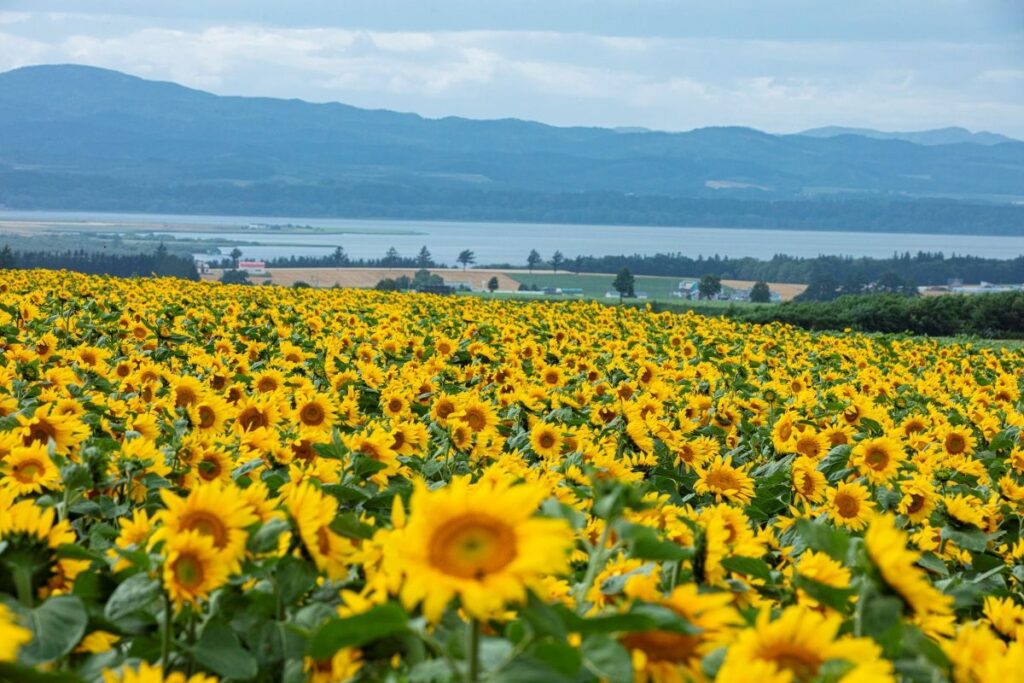 女満別地域の高台に位置しており、網走湖から斜里岳や知床連山まで360度の大パノラマを眺望できる絶景スポット。8月~9月の長い間、一面のひまわりが展望台周辺で咲き誇ります。故黒澤明監督の映画「夢」のロケ地に選ばれたことで有名です。
