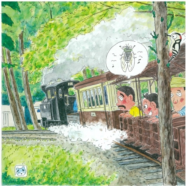 ピ〜ッ! かん高い汽笛を鳴らし出発進行。玩具のような機関車が鉄橋を渡る。ガトンガトンの揺れが好い。(蒸気と煙のにおいがなつかしかぁ…)約十五分の汽車の旅だが、たまんなく嬉しくなっちゃった。
