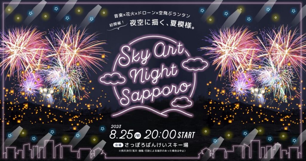 札幌中心部に最も近いスキー場として知られ、夏もさまざまなアクティビティが楽しめる「さっぽろばんけいスキー場」で8月25日(金)、「SKY ART NIGHT SAPPORO」が開かれます。創業100年以上の歴史がある花火専門企業2社が、山々に囲まれたロケーションを活かして盛大な花火を打ち上げ、臨場感ある空間を演出。花火に加えて、ドローンやランタンショー、音楽ステージも。夏の夜空を舞台に繰り広げられる音と光のアートによるエンターテインメントをお楽しみください。