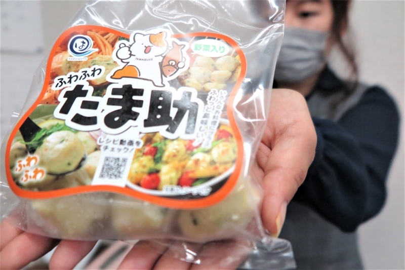 商品は「ふわふわたま助」。タラなど白身魚のすり身にキャベツやニンジンを混ぜ込み、柔らかい食感が売り。同社は「鍋だけでなく、スープ、イタリア料理にも合う。加熱しても固くならない」とする。