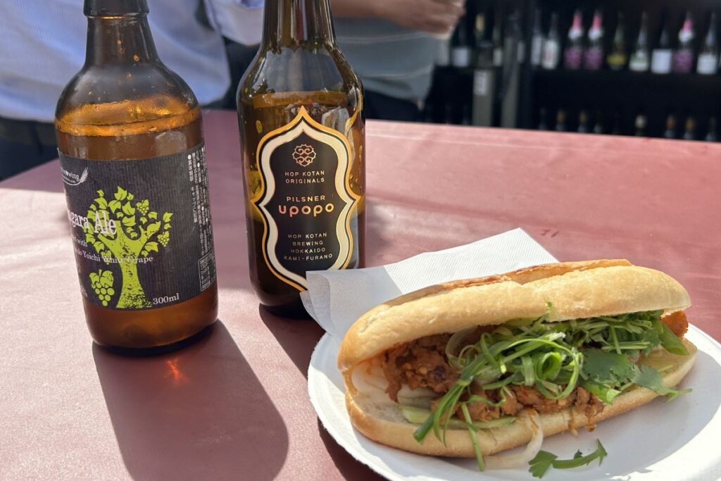 初出店のベトナム料理のお店がありました。「Banh mi Saigon Fresh」。フランスパンに具材をはさんだバインミーのポークレモングラス(800円)をクラフトビールと合わせてみます。パクチーの香りとスパイシーに味付けされた豚肉、ダイコンやニンジンなどたっぷりの野菜がぴったり。結構辛く、スパイスの香りもしっかりしますが、パンのおいしさもちゃんと感じられます。舌に残ったヒリヒリ感をビールで流します。