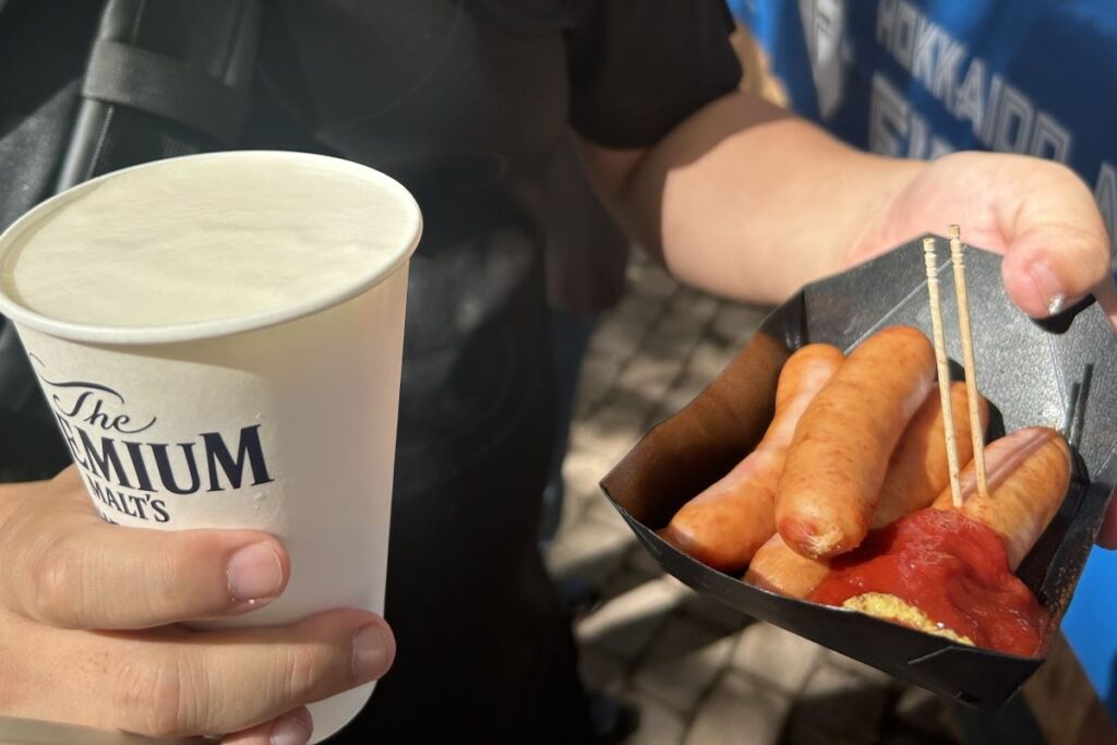 「F-PARK×シャウエッセンバル」では、ビールのお供にぴったりな日本ハムのソーセージやハムを販売。ビール片手にシャウエッセン北海道プレミアム(500円)や北海道プレミアム生ハム・ロースハム盛り合わせ(500円)などをピックアップする人がいました。