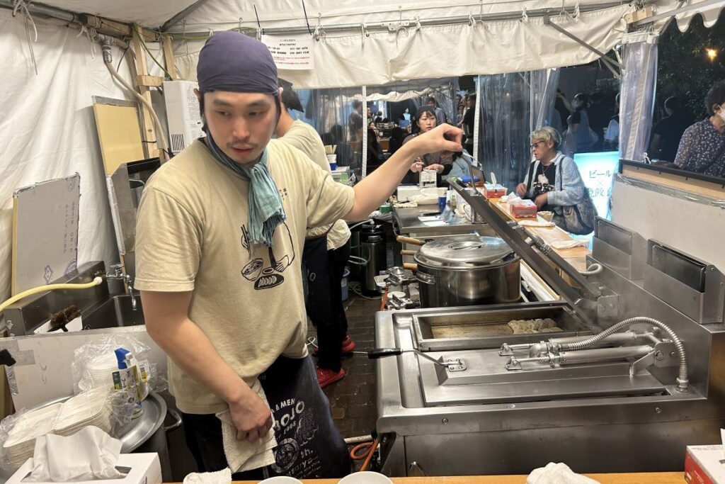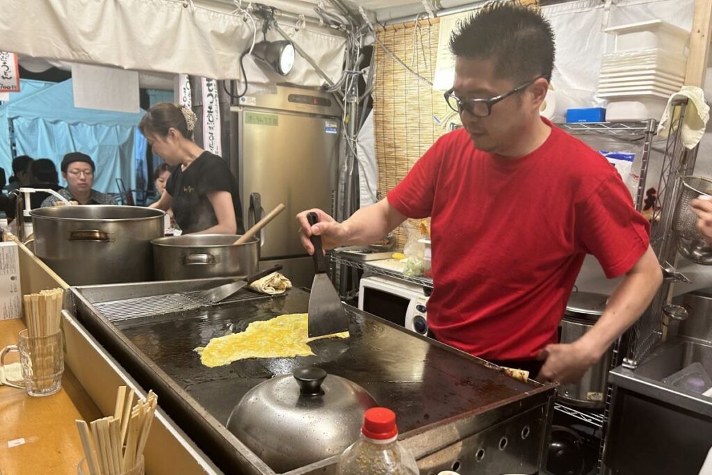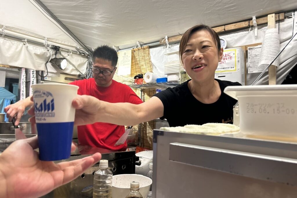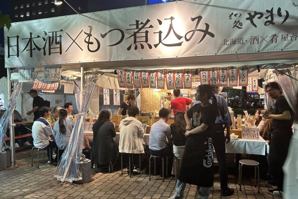 「北海道・酒×肴屋台」と名付けられたこの4店は、調理スペースの前に「コ」の字型にカウンター席が10数席ある、屋台スタイルです。2020~22年は新型コロナの影響で休止。今年、4年ぶりに復活しました。4店はそれぞれ、自慢の看板メニューとそれに合うお酒のペアリングを提案しており、今回はその組み合わせを全部試してみました。