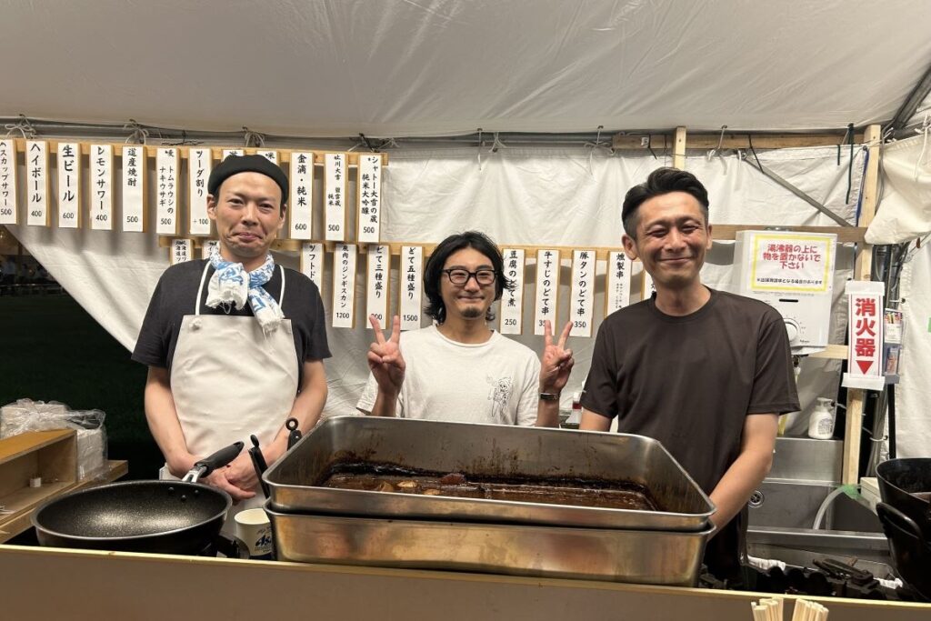 「はーい、もつ煮でお待ちの方ー」「こっちビール2つね!」と元気のいい声が飛び交います。この屋台を仕切るのは、北2条店の店長さん。北2条店はお休みして、オータムフェストに出ているそう。「ありがとうございます。またどうぞ」と、威勢のいい声に見送られて、店を後にしました。