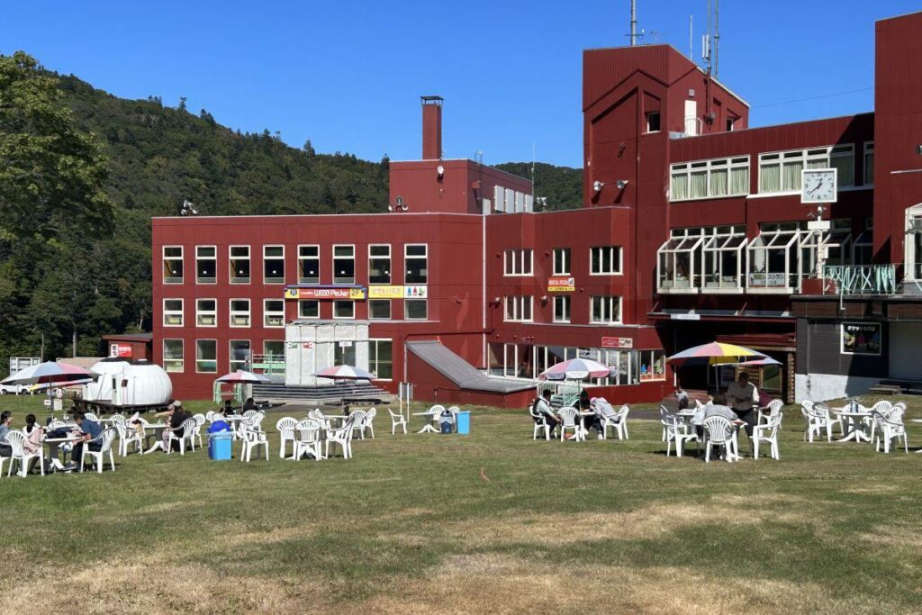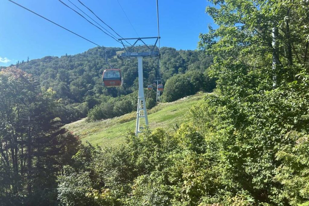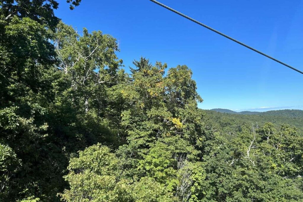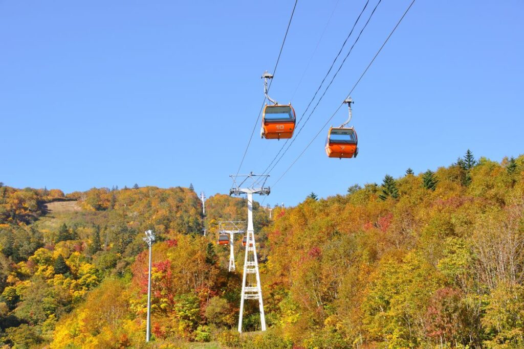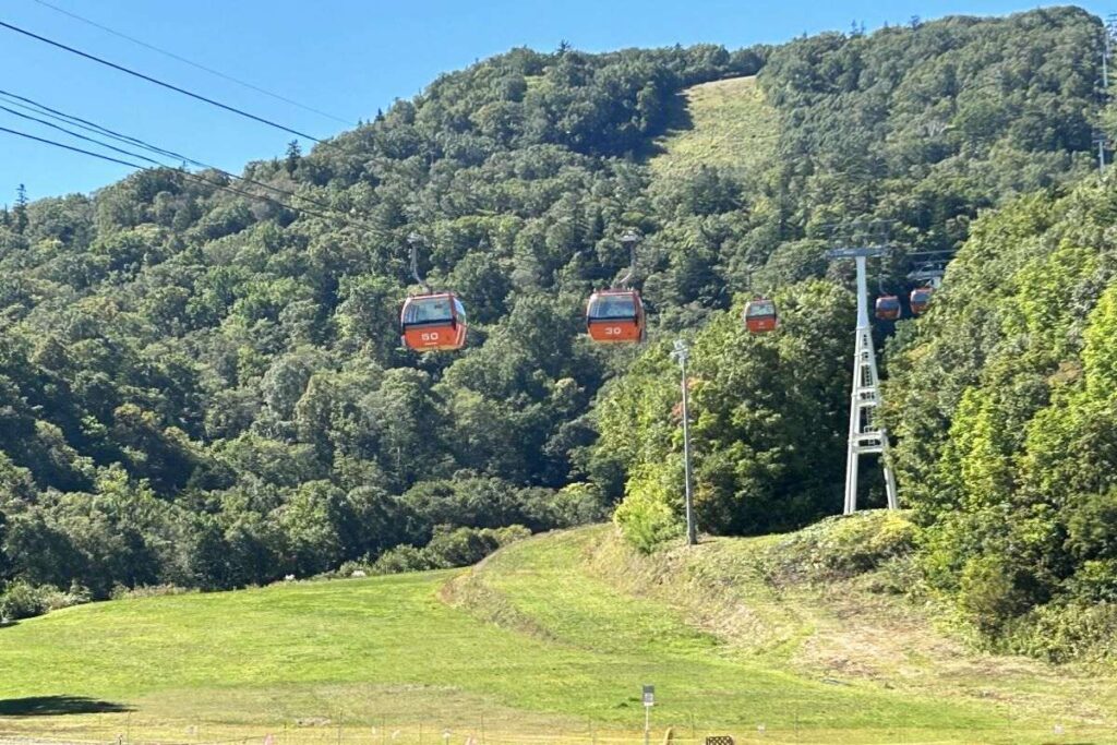 下りのゴンドラから、本当にちょっとだけ色づいている木を発見。でも、まだこの程度です。ただ、ゴンドラの窓から入ってくる風は、秋の気配。天気が良ければ、空中散歩を楽しんで、山頂からの景色を眺めるのも気持ちがいいです。山頂のカフェ「SKS INTERNATIONAL Cafe」はオーガニックコーヒーにこだわりがあり、旭川市江丹別の伊勢ファームのグラスフェットミルクを使ったソフトクリームも人気だそうで、ここで一息入れるのもいいですね。