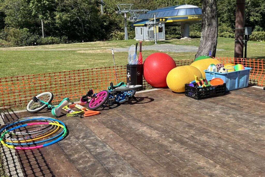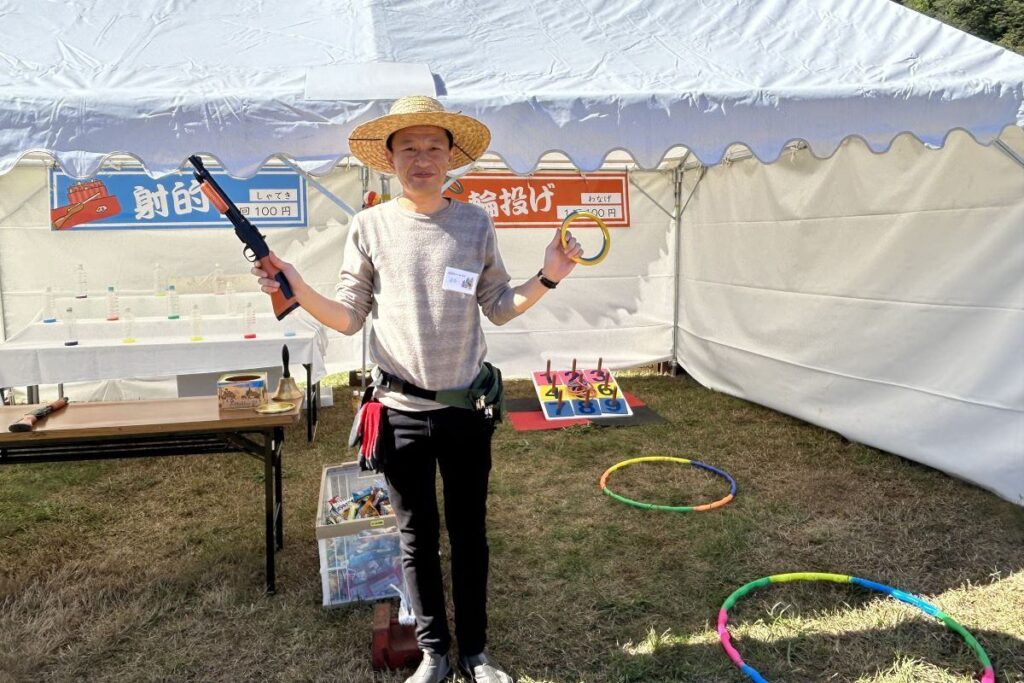 また、射的や輪投げ(1回100円)のコーナーも開設。フラフープや竹馬、ボールなどの遊具も無料で貸し出しており、家族で来て、のんびり過ごすことができます。