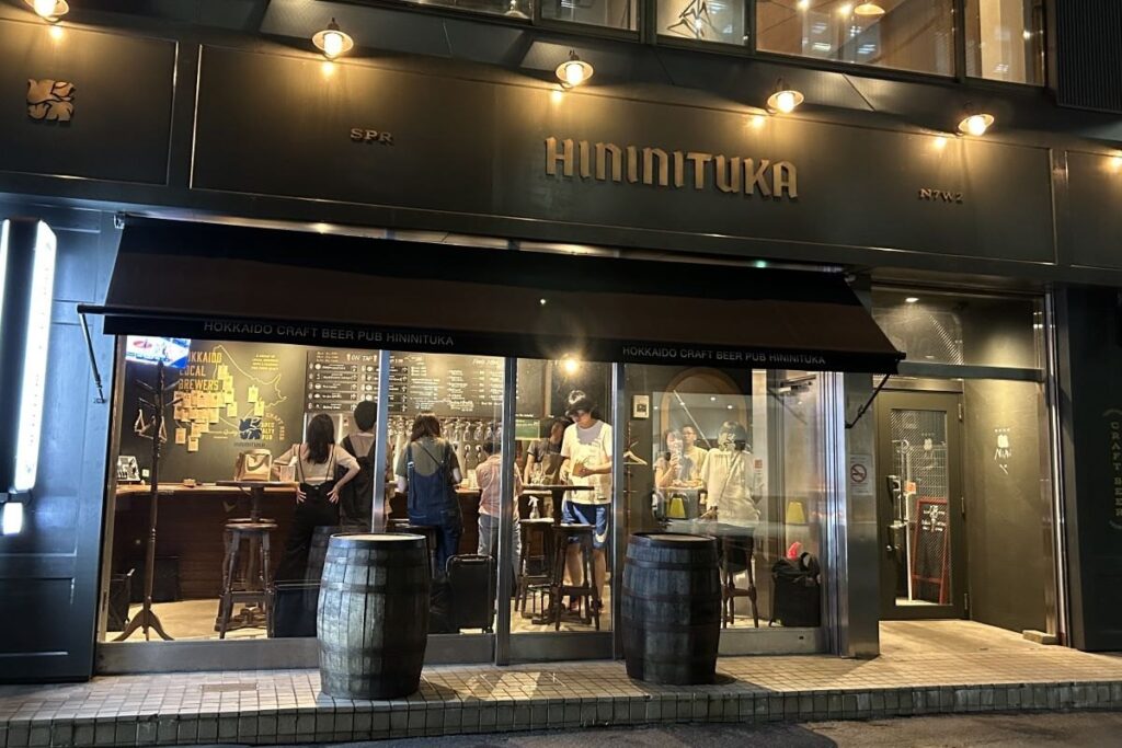 札幌駅北口近く、オフィス街のビルの谷間にぽつんと浮かび上がる明かり。道産のクラフトビールにこだわる「ヒニニツカ」です。10あるタップのすべてが、道産のクラフトビール。味わいや香り、色など個性豊かなビールを、ビールを引き立てるフードと一緒に提供しています。