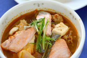 〈旬!を味わう〉秋サケ*ピリ辛キムチ汁で体ぽかぽか*脂控えめ バターと好相性