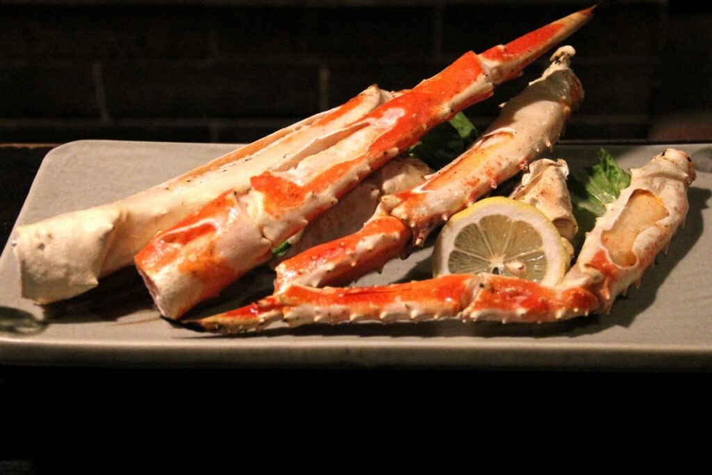 ホッケやタラバ足を 目の前の炭火で香ばしく