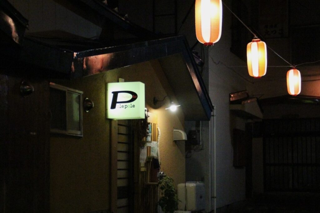 今年3月に4周年を迎えたパフェバー「Polepole(ポレポレ)」。花園のなかでも特にディープな雰囲気を漂わせる「嵐山新地」という小路沿いの「P」の行灯が目印です。築100年の建物ですが、店内にはたくさんの雑貨が並んでいるのでカラフルでポップな雰囲気。店主のマッキーこと山本真紀子さんの「若い時から雑貨店をやりたかった」という夢を、そのまま夜の花園で叶えたようなお店です。