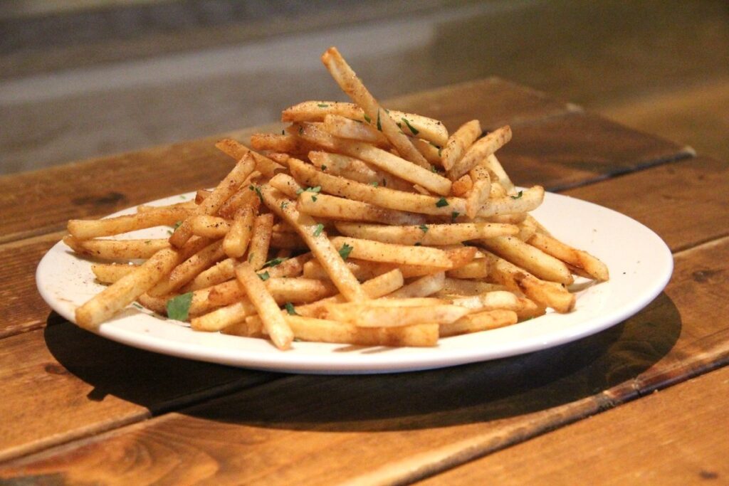 人気メニューの1つが、「Bridgeポテト」。細切りのポテトをカリッカリに揚げ、アンチョビバターで味付けしパセリを散らしています。「とりあえずBridgeポテト」と最初の一杯のように頼まれるほど、人気なんだそうです。