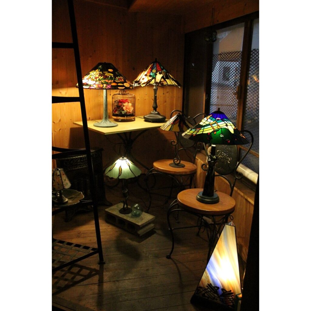 店を彩るステンドグラス 美しい灯りと創作料理を