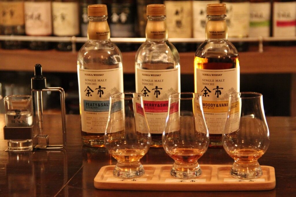 オススメは「余市蒸留所限定 シングルモルト(タイプ別)セット」。3種類のシングルモルトは、55%と度数が高く、それぞれの香りを楽しみながらゆっくりと味わってほしいお酒。