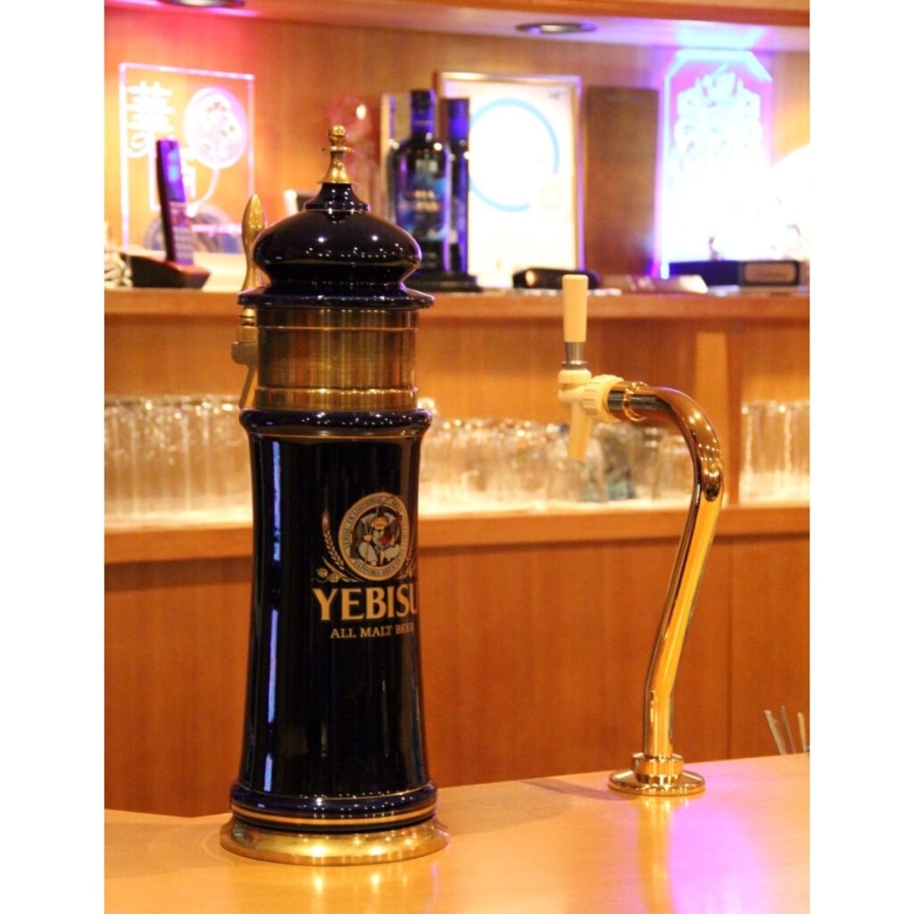 また、ぜひ飲んでほしいのがヱビスビールの生ビール。こちらの黒いビールサーバーは、日本で数台しかない貴重なものなんです! このヱビスビールは、セットプランには入っていませんが、貴重なヱビスの生、ぜひ飲んでみたくなりますよね。