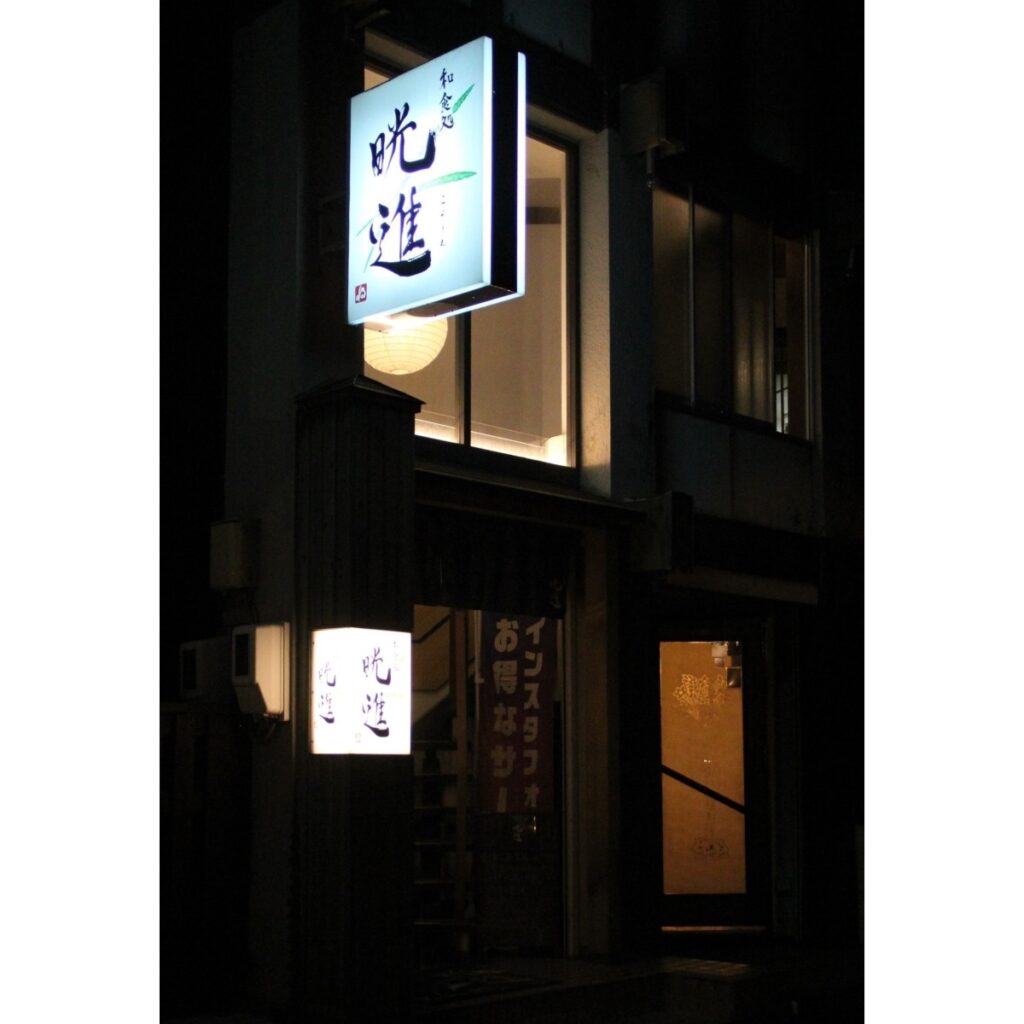 2021年6月21日にオープンした「和食処 晄進(こうしん)」。コロナ禍で、時短営業からのスタートになりましたが、「そんな暗い時だからこそ料理とお酒を楽しんで、明るい方に進んでいけるように」という願いを込めて「晄進」と名付けました。