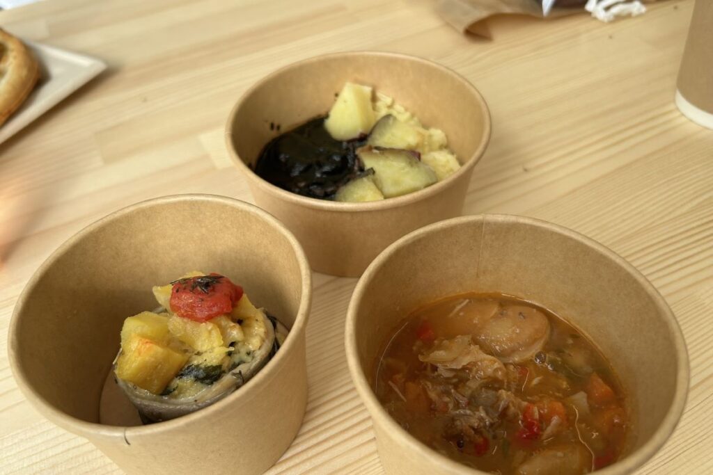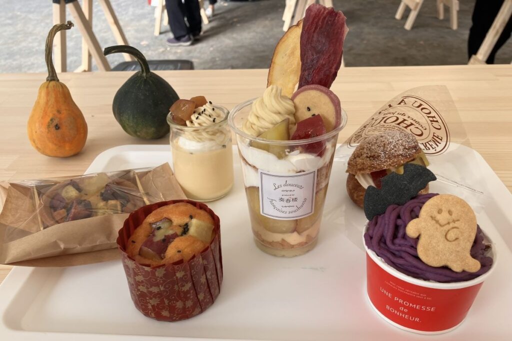 札幌市中央区のスイーツ&カフェ「奏春楼」も出店し、イベント限定のオリジナルスイーツを販売しています。保存料を極力使わず、サツマイモの甘さや風味を生かした、見た目にも、食べても納得のケーキやプリンが並びます。「さつまいもの焼きタルト」(400円)はむらさきいもと紅あずまを使い、カラフルで楽しい見た目。「さつまいもパフェ」(800円)は、サツマイモを模したクッキーやサツマイモの皮、グラッセで飾られ、秋らしい一品です。