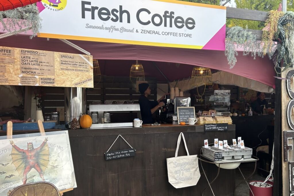 コーヒースタンド「Fresh Coffee」も出店。札幌市中央区のカフェ「スムーチコーヒースタンド」と札幌・定山渓の姉妹店「ゼネラルコーヒーストア」のプロデュースで、サツマイモに合うようにロースト、ブレンドしたこだわりのコーヒーやラテ、エスプレッソなどを提供しています。