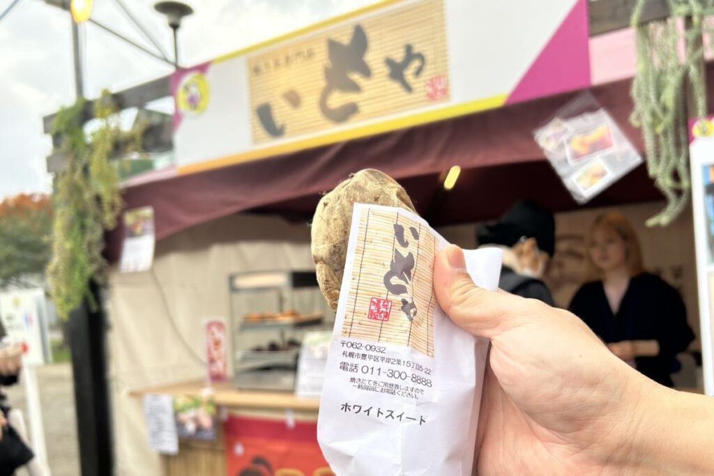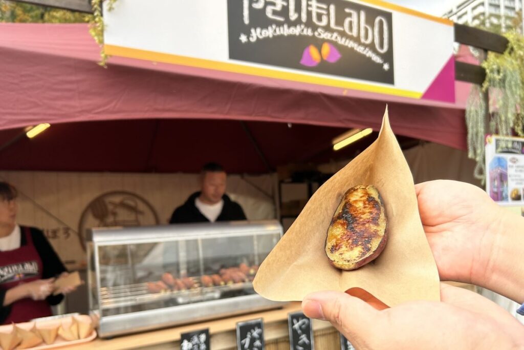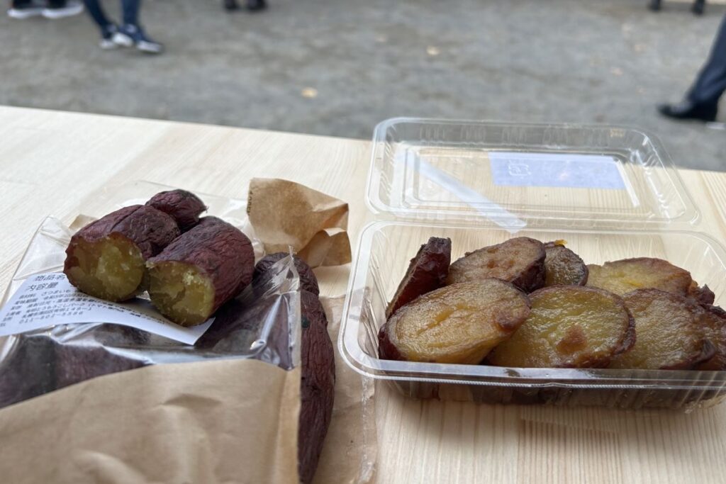 焼きいものほか、サツマイモを使ったスイーツや大学いもなど秋の味覚を楽しむ「さっぽろ焼き芋テラス2023」(実行委主催)が10月27日(金)、札幌・中島公園の南9条広場で開幕しました。初めての開催で、焼きいも店6店のほか、スイーツ店やサツマイモを使ったお酒に合う料理を出す店など5店が出店。各店の焼きいもを品定めしたり、焼きいもに合うコーヒーやワインを楽しんだりする人たちでにぎわっています。11月5日(日)まで。