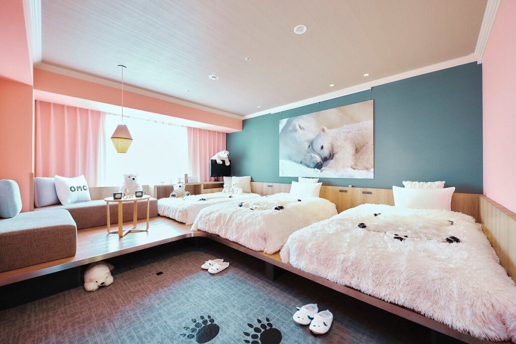<おすすめポイント>旭山動物園で人気のシロクマやペンギンをテーマにしたコンセプトルームや、近隣のおすすめの飲食店情報が掲載された「ご近所マップ」など、館内外で旭川を楽しめる仕掛けが満載。