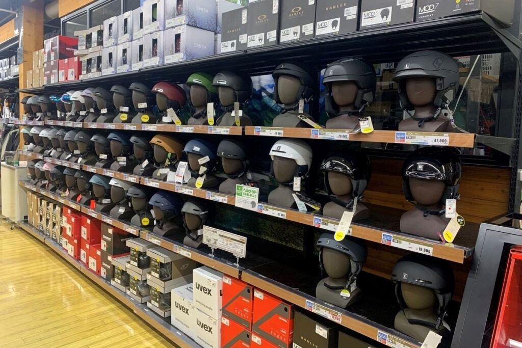 日本でヘルメットが店頭に並び始めたのは、5~6年前から。子供向けのスキー教室では、ヘルメットの着用が必須という条件が浸透していて、スキー選びに来店する親子連れが購入していくそうです。