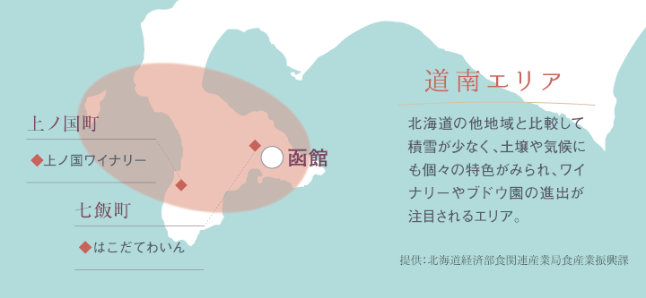 道南エリアは、海外ワイナリーが初参入するなど新たなワイン産地として注目されている。リンゴなどの果実栽培のノウハウが根付き、観光資源も豊富でワインツーリズムの可能性にも期待が高まる。温暖化の影響で国内外のワイン産地が栽培に苦労する中、冷涼な気候が幸いし、ワイン造りの適地との呼び声も高まっている北海道。肥沃(ひよく)で水はけの良い土壌や風土のある道南を訪ねた。