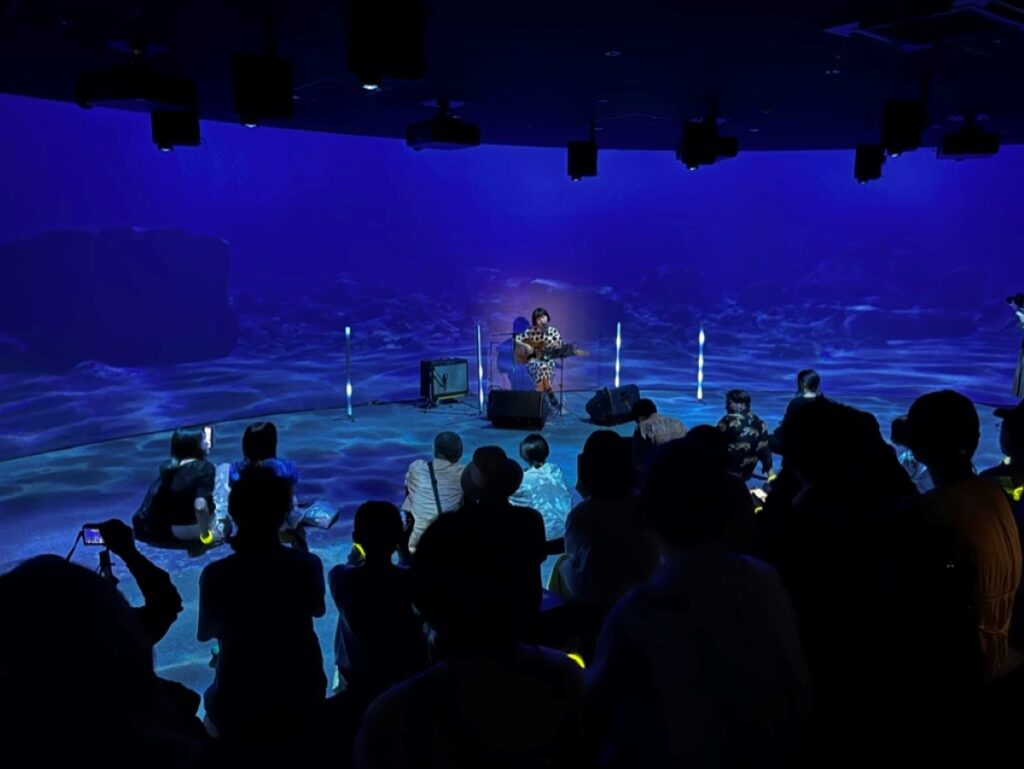 幅約20メートルの大型スクリーンが設けられ、120平方メートルと広々とした会場の「ブルールーム」は、まるで海にいるかのような空間。この会場で繰り広げられるパフォーマンスは、、新しい水族館の楽しみ方とも言えそうです。ぜひ、「AOAO NIGHT」に足を運んでみてください。