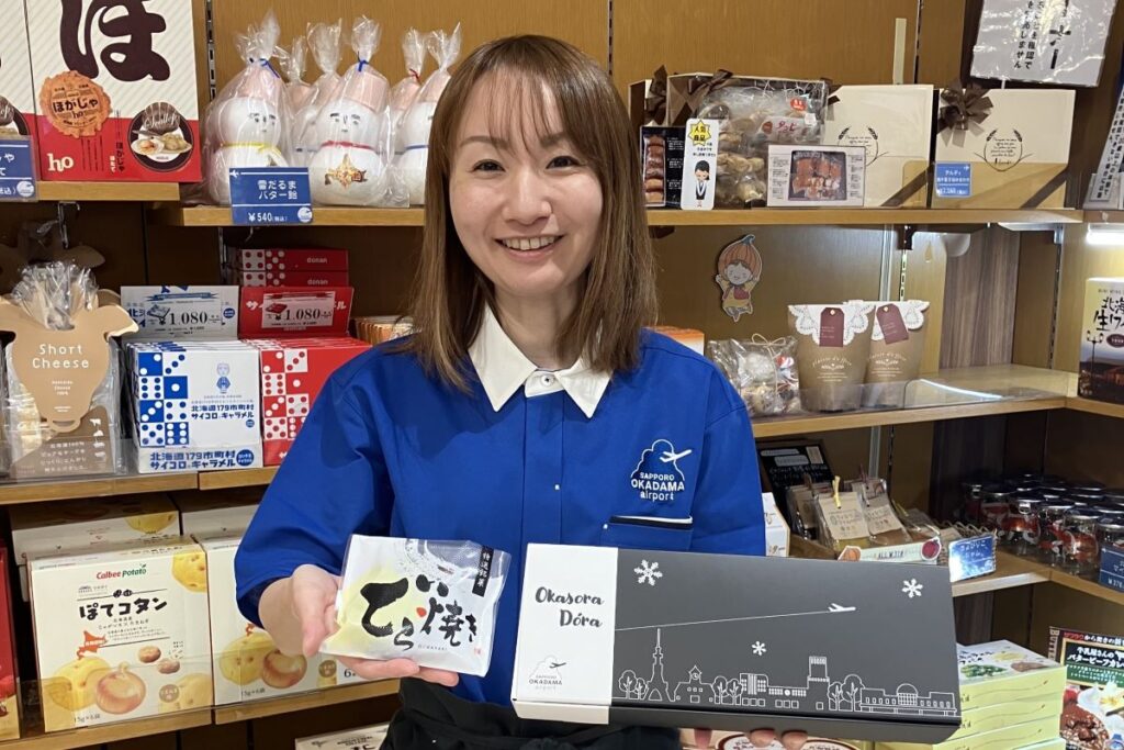 もう1つの空港限定の商品が、どら焼き「Okasora Dõra」です。同じく開港80周年、ビル開業30周年を記念して、空港近くの東区の「菓子司 松屋」が製造。世界の空港にはそれぞれ、国際航空運送協会が定める「スリーレターコード」が割り振られており、丘珠空港は「OKD」です。Okasora Dõraには、「OKD」の焼き印が押されたものが5個入っています。どちらもおいしくて配りやすいと好評だとか。