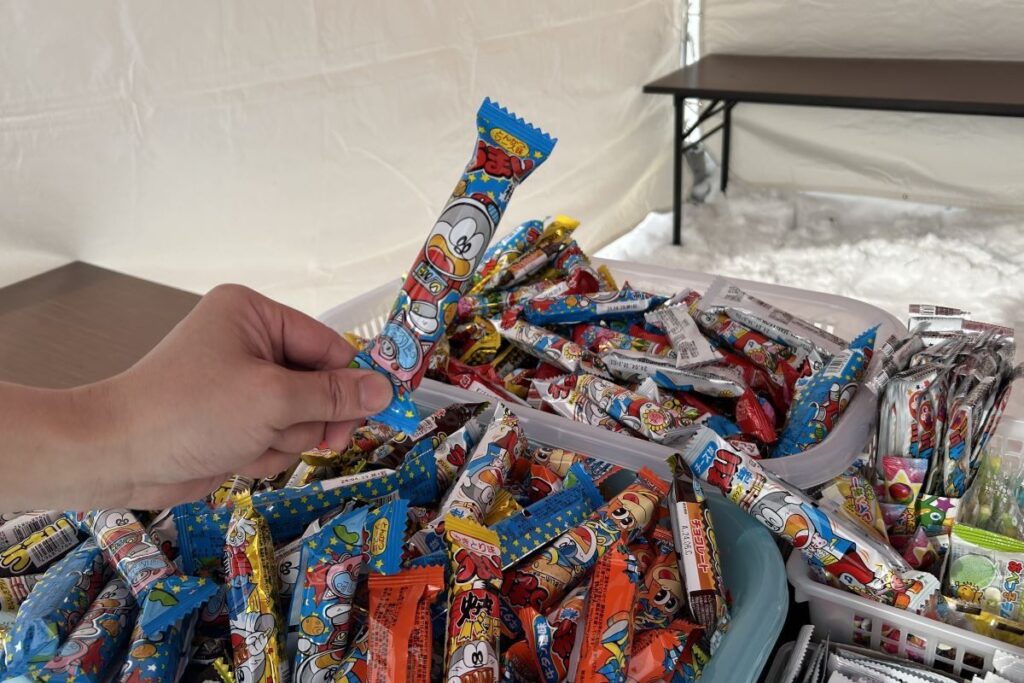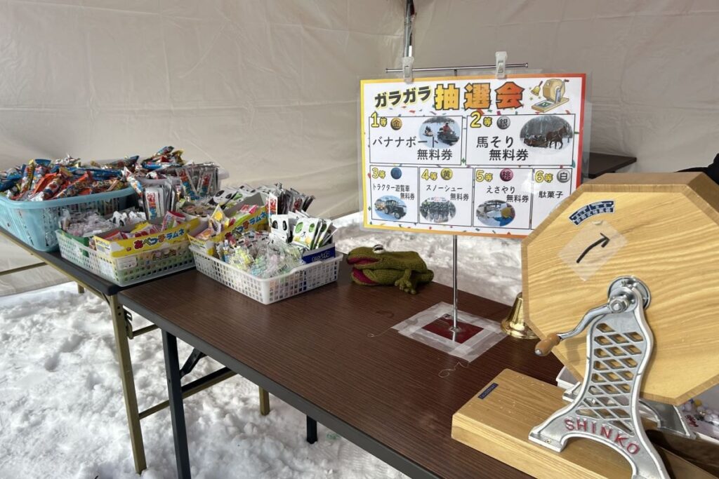 鍋料理を2品購入すると、バナナボートや馬そり、さとらんど内で冬に実施している動物へのえさやり体験などの無料券、駄菓子が当たる抽選に挑戦できます。