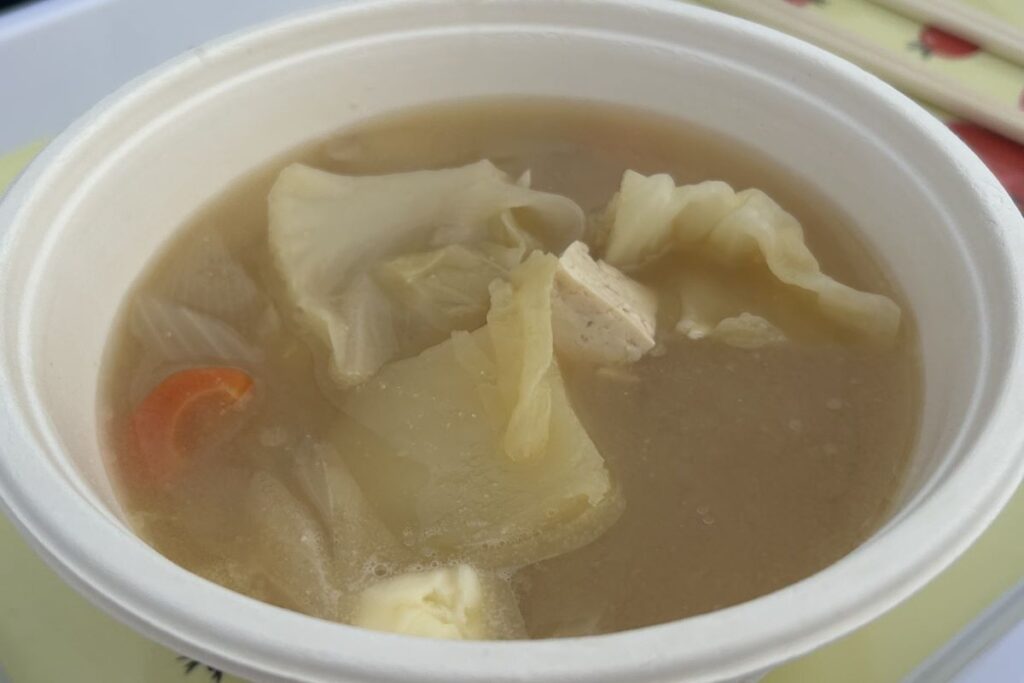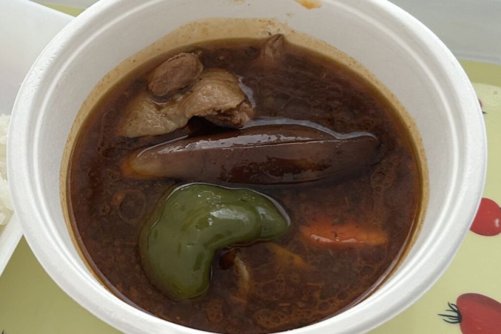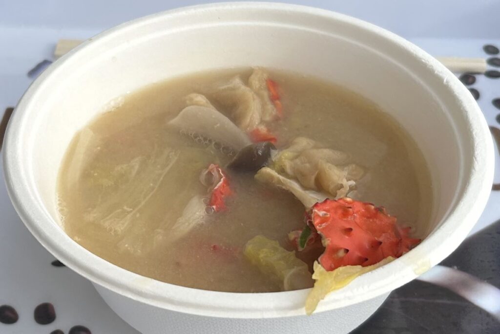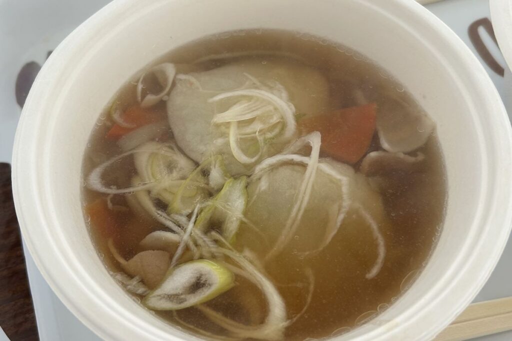 スープカレー鍋は、スパイスの香り豊かなスープに大きめにカットした鶏肉とジャガイモ、ニンジン、ナス、ピーマンが入っています。あまり辛くはなく、子どもでも食べられそうですが、スパイスの効果か、心なしか体がポカポカします。スープカレーは1971年、札幌市内の喫茶店「アジャンタ」で漢方と香辛料をブレンドした「薬膳スープ」を提供したのがもとになったとされています。その後、カレー店の「マジックスパイス」がインドネシアの鶏肉のスープ「ソトアヤム」をアレンジして「スープカレー」という名前で提供し、広まったそうです。