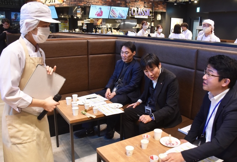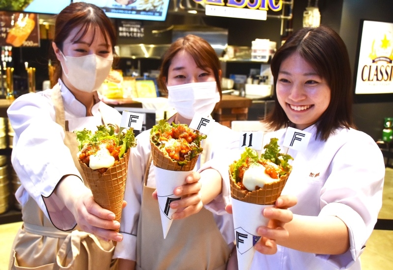 メニュー名や値段などはこれから決める。審査統括を務めたエームサービスの倉重剛・ユニットマネジャーは「ピリ辛の鶏肉と甘いワッフルが意外に合い、片手で食べられるのも良い。きっと売れ筋商品になれる」と太鼓判を押す。