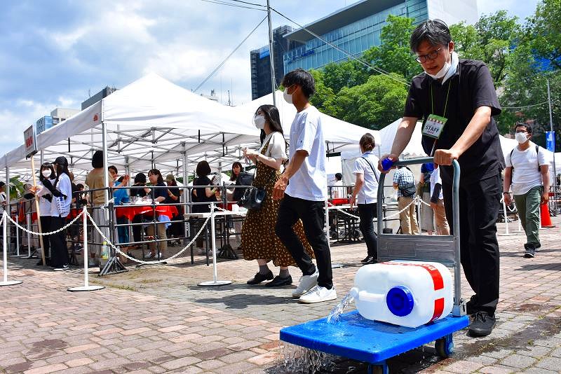 会場では打ち水用の手作り散水車(?)が登場し、スタッフが汗だくになりながら「涼」を提供しています。