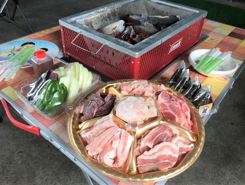 6月中旬から始めたバーベキュー付きのプランは、皆楽公園の施設で食事を楽しむ内容で町内の精肉店の独自ダレで漬けたジンギスカン、野菜、おにぎりなどと、炭や着火剤などの道具一式がセット。1人1泊6650円~8150円。2人以上が対象で、利用日の7日前から予約できる。