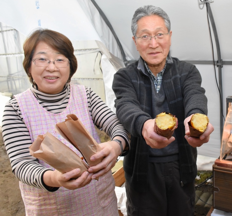 【平取】町荷菜の農家「三浦ファーム」の三浦繁春さん(69)、敏子さん(68)夫妻が作り販売している焼き芋が好評だ。3月初めから市街地に近いファーム内の無人販売所で売り始めたところ、地元の主婦らに「安くておいしい」という評判が広がり、連日50本近くが完売している。夫妻は「こんなに反響があるとは。地域住民に喜ばれているなら何より」と笑顔を見せる。