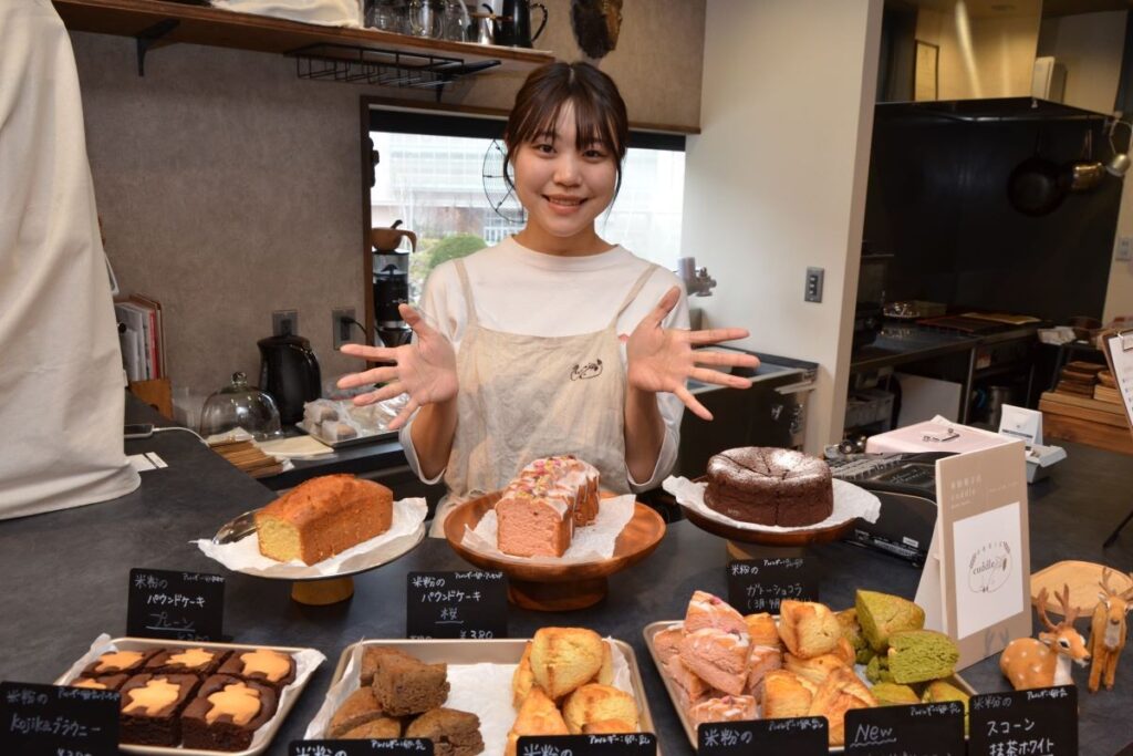 「米粉菓子店cuddle(カドゥル)」は実店舗を持たず、イベントやシェアカフェなどで出店しています。調理師免許を持つ店主の内海里香さん(27)=札幌市在住=が米粉についての勉強やメニューの試作を重ね、2023年に開業しました。