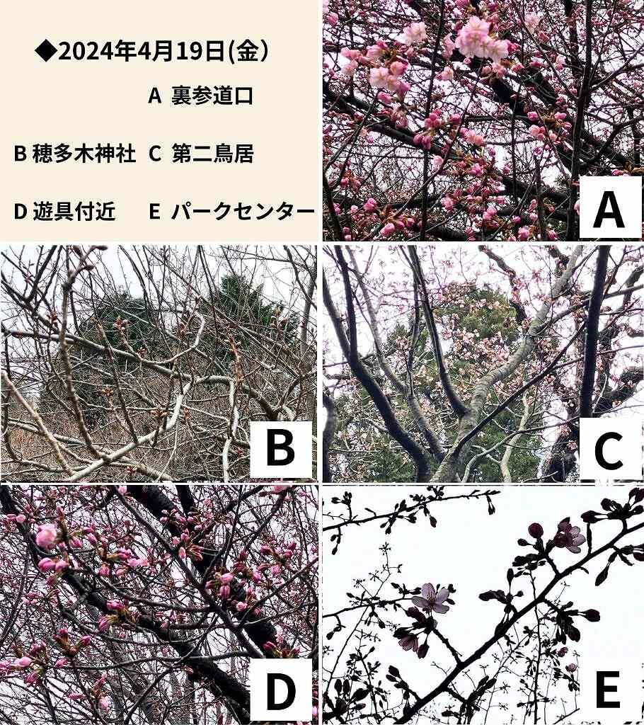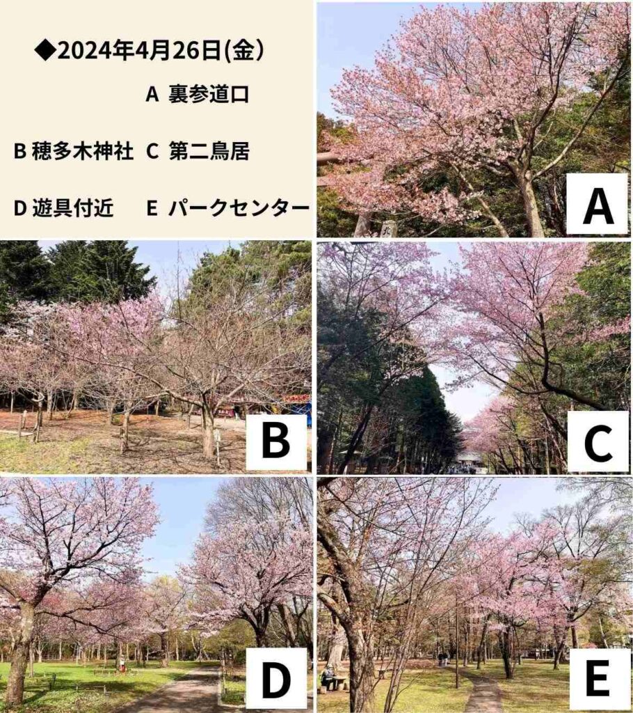 パークセンター前のシダレザクラはきれいに咲いており、写真を撮る人も。公園南側の坂下野球場のソメイヨシノもまだ咲いています。