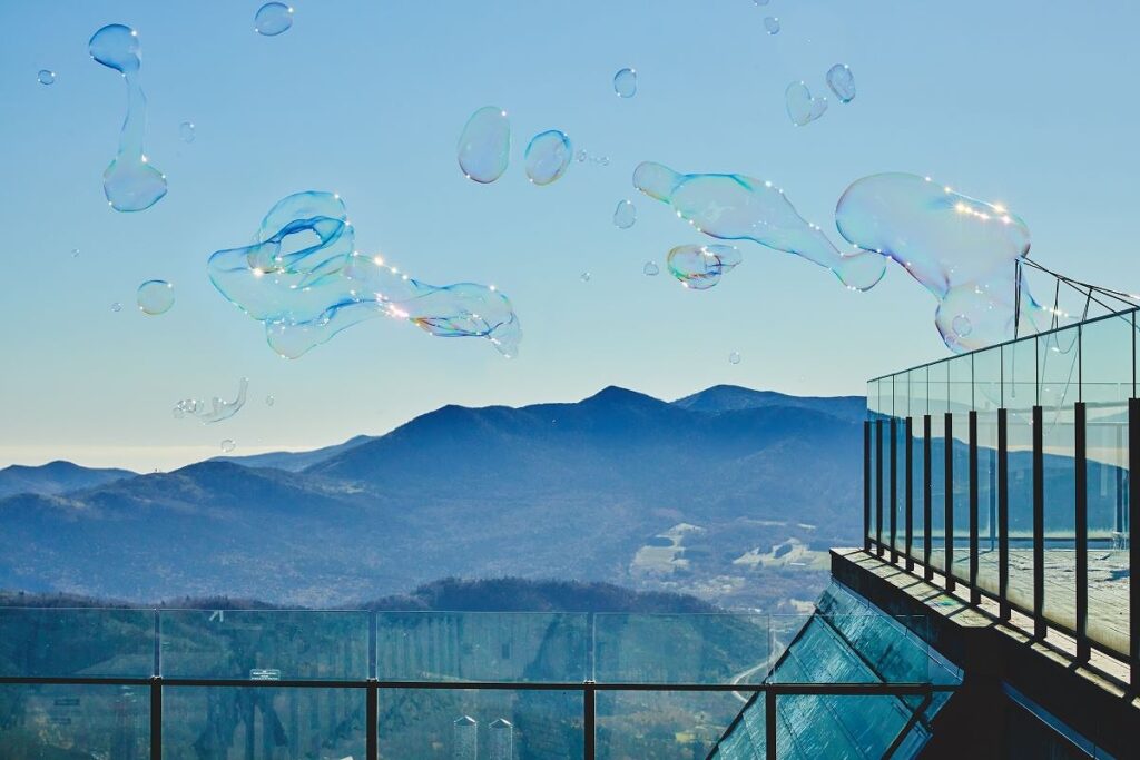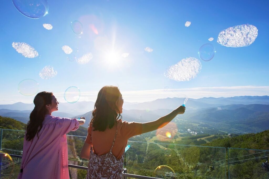 北海道の⼤地を感じるネイチャーワンダーリゾート「星野リゾート トマム」は、2024年5⽉9⽇(木)に「雲海テラスオープニングセレモニー2024」を開催します。これは、ダイナミックな雲海を間近で観賞する展望施設「雲海テラス」の営業開始⽇に、多くの⽅々が雲海に出会えますようにという願いを込めて、毎年⾏っているセレモニーです。雲に⾒⽴てたシャボン⽟を⻘空に⾶ばす「クラウドリリース」は、スタッフもお客さまも⼀緒に⾏います。さらに、個性的な展望スポット「Contour Bench(コンターベンチ)」が描かれた雲海ゴンドラや、セレモニー限定のチケットが登場します。