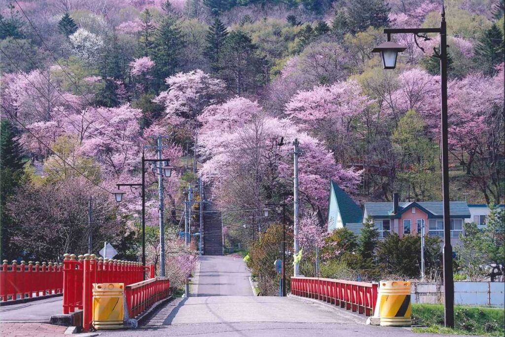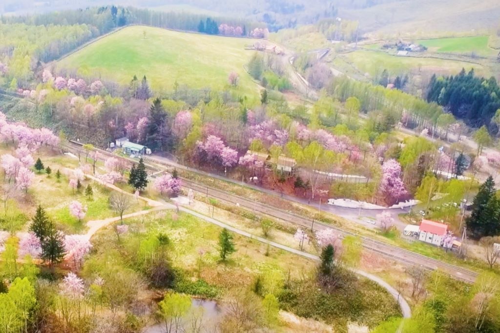 塩狩峠記念館(三浦綾子旧宅)やJR塩狩峠駅が近く、約1,600本のエゾヤマザクラが咲き誇る、有名なお花見スポットです。例年5月初旬から中旬が見ごろ。塩狩駅から南丘森林公園へ続く道路脇の桜並木もあり、薄紅色の景色が広がります。和寒町役場公式YouTubeチャンネル「わっさむ食と観光の魅力発信」ではドローン空撮による「田舎の絶景!塩狩峠一目千本桜・塩狩峠記念館」を公開しています。