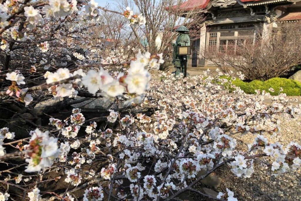 明治2年(1869年)に地元大工が国後島から持ち帰り、明治36年(1903年)に寄贈したチシマザクラが境内を鮮やかに彩ります。現在は、チシマザクラとエゾヤマザクラなど30本ほどに。北方領土由来のチシマザクラを標本木としているのは全国で唯一。
