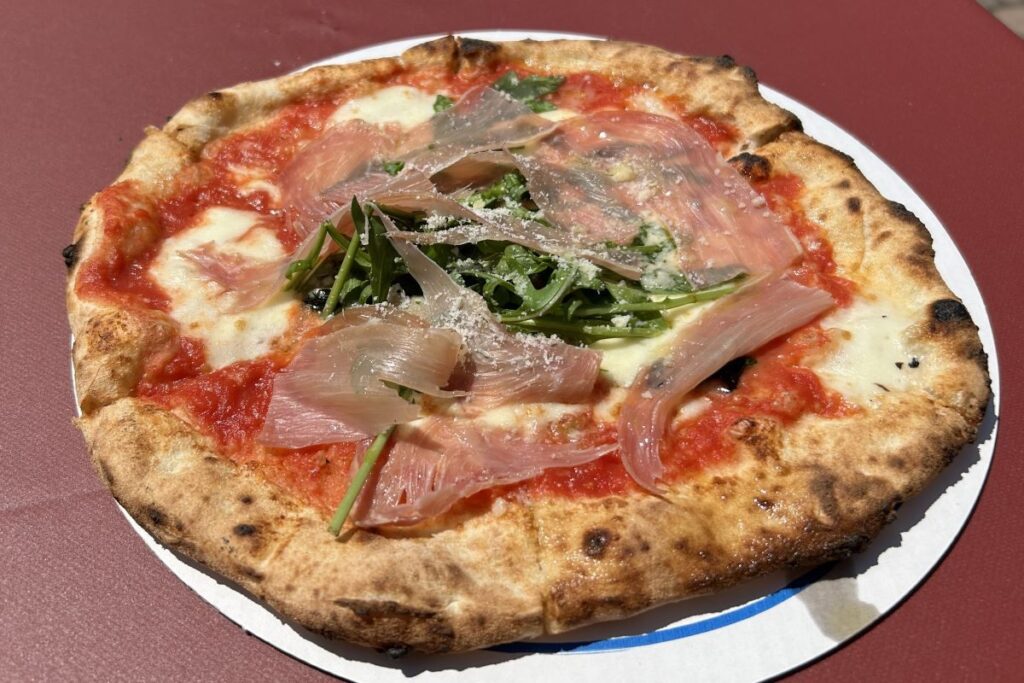 イタリアンの「チルコ」からはピザを購入。マルゲリータ(1800円)は北海道産小麦を使った生地に、プロシュートがたっぷり。薄めの生地にとろけたチーズがたっぷりのっており、プロシュートの塩気とルッコラのごまのような香りとぴりっとした辛さがおいしい。