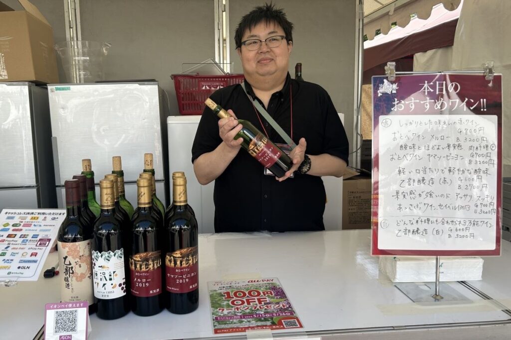 おとべワイナリー(乙部町)は赤と白の5銘柄を出品。同ワイナリーは1976年の醸造開始の老舗ワイナリー。「乙部醸造」の赤と白は手軽で飲みやすいテーブルワイン。「おとべワイン ヤマソービニヨン」は2022年に富岡ワインから現在の名称に変更した際につくったアニバーサリーワイン。山ブドウとカベルネソービニヨンを使っており、同ワイナリーを運営する札幌酒精営業部の平野将人さんは「果実味が強く、山ブドウの酸味もしっかりあり、味がぼやけず、力強さがあります」と説明します。