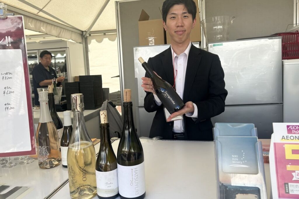 札幌市などでつくる実行委の主催で、北海道産ワインを集めた屋外イベントとしては道内最大級。ワインガーデン会場では、東西に北海道産ワインの販売カウンターが設けられ、ソムリエ資格を持つワインガイドが日替わりで常駐しています。そのほか、ワインを出品しているワイナリーやヴィンヤードの生産者もカウンターに立っており、ワインの特徴やフードとのペアリング、ブドウの種類などについて話を聞くこともできます。