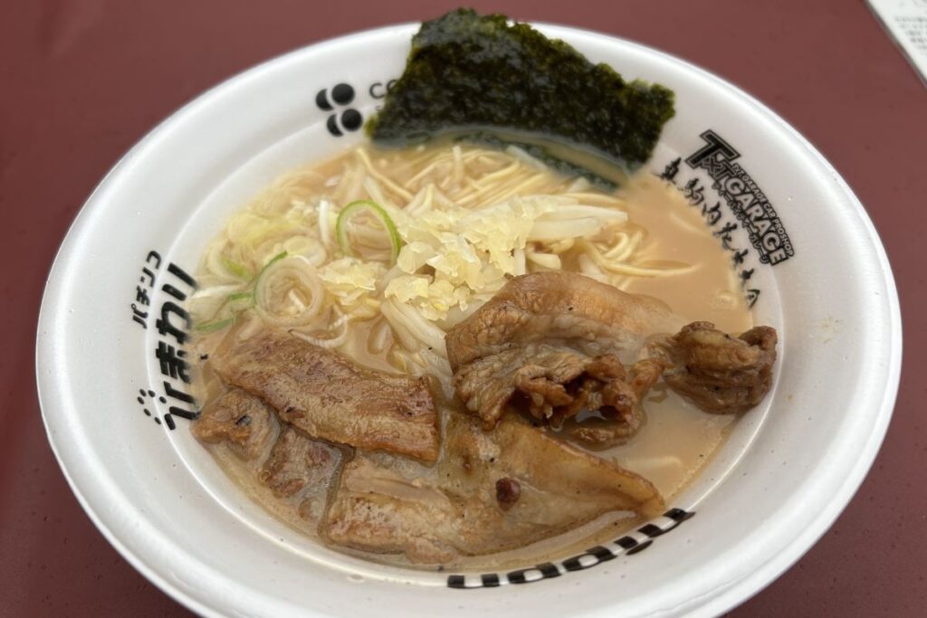 麺屋たいそん(福岡)の「濃厚博多豚骨炙りチャーシューラーメン」は、さすが本場の味。豚骨のコクとうまみが凝縮された濃厚なスープが、コシのあるストレートめんと絡みます。チャーシューとキクラゲもスープとの相性が抜群。博多で食べたあの味がラーメンショーで体験できるのはうれしいですね。