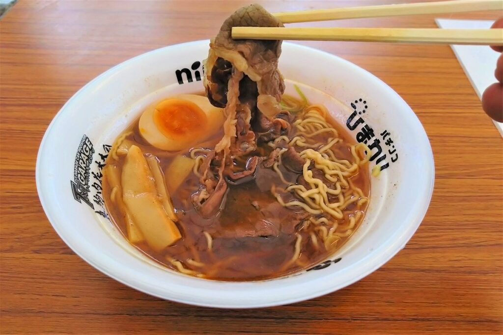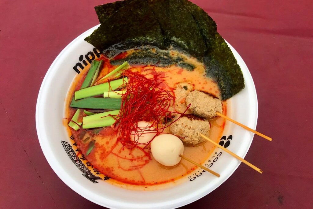 いずれも1杯980円で、会場のほか、セブンイレブンとセイコーマートのマルチコピー機で購入できます。会場ではラーメンのほか、焼き鳥やフライドポテト、ビール、ハイボールなども販売しており、ラーメンと一緒に楽しむことができるほか、仕事帰りの「ちょい飲み」にも利用できそうです。