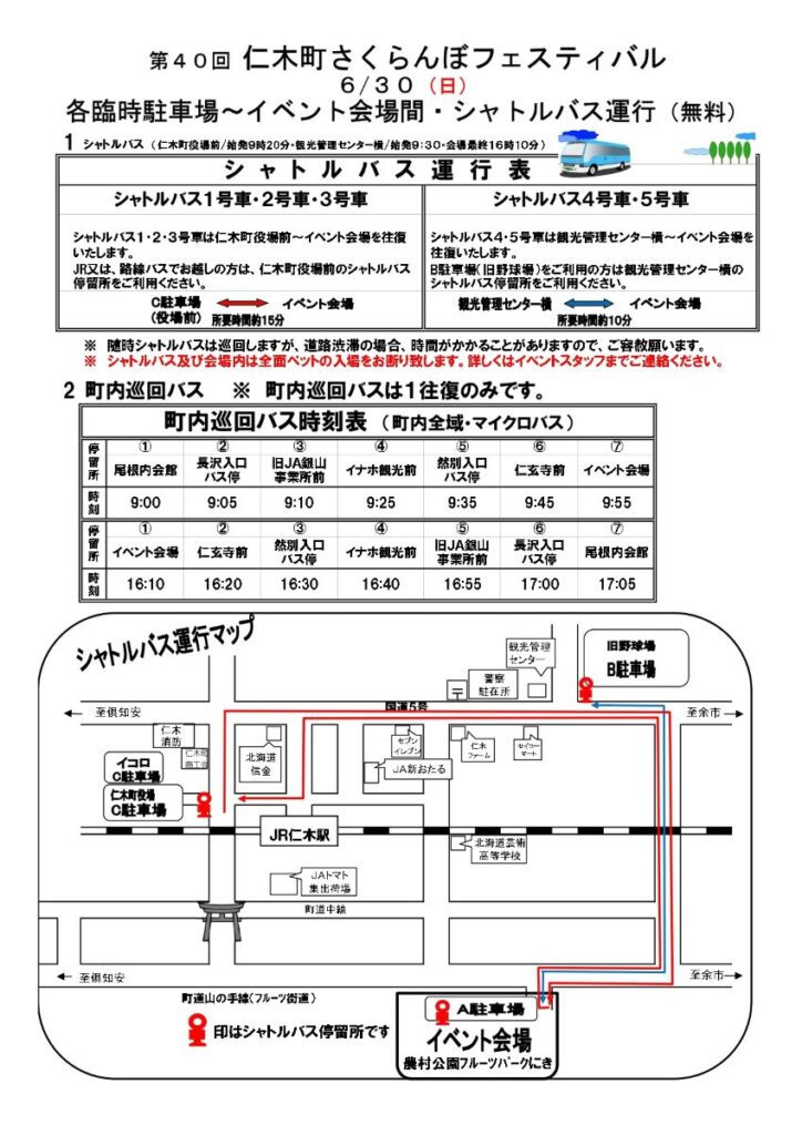 仁木町役場駐車場(JR仁木駅から徒歩3分)からシャトルバス運行(無料)
