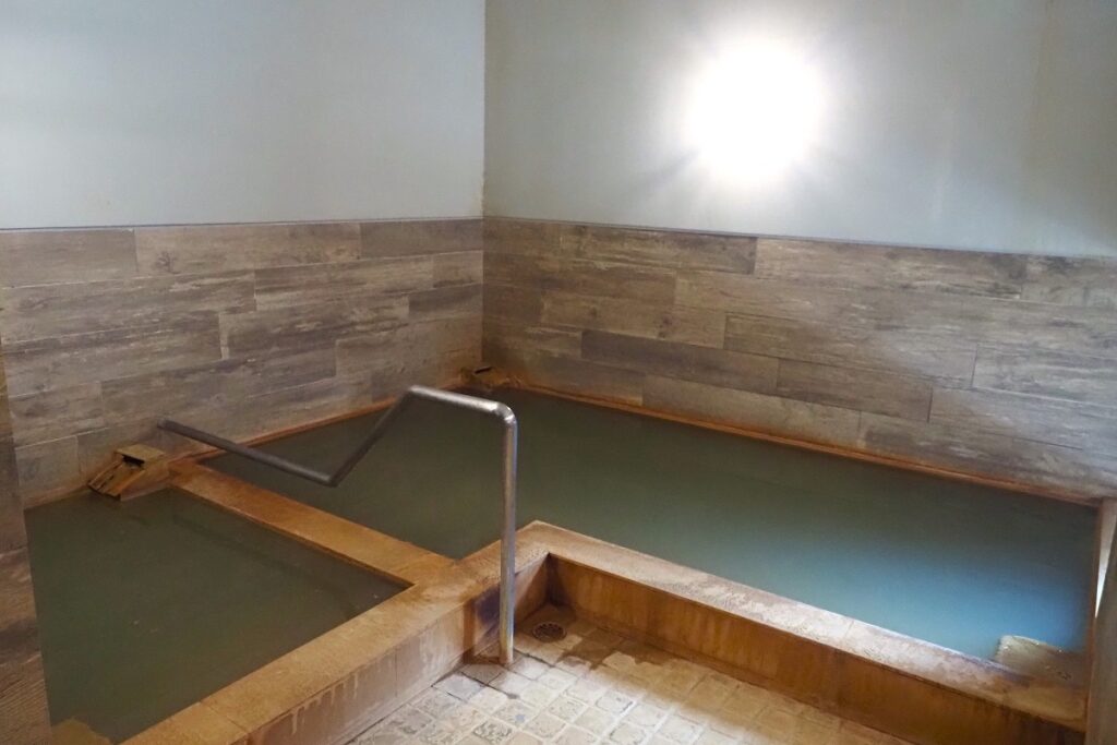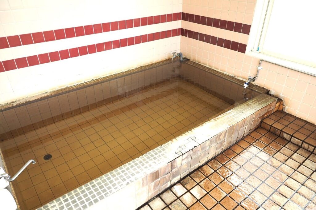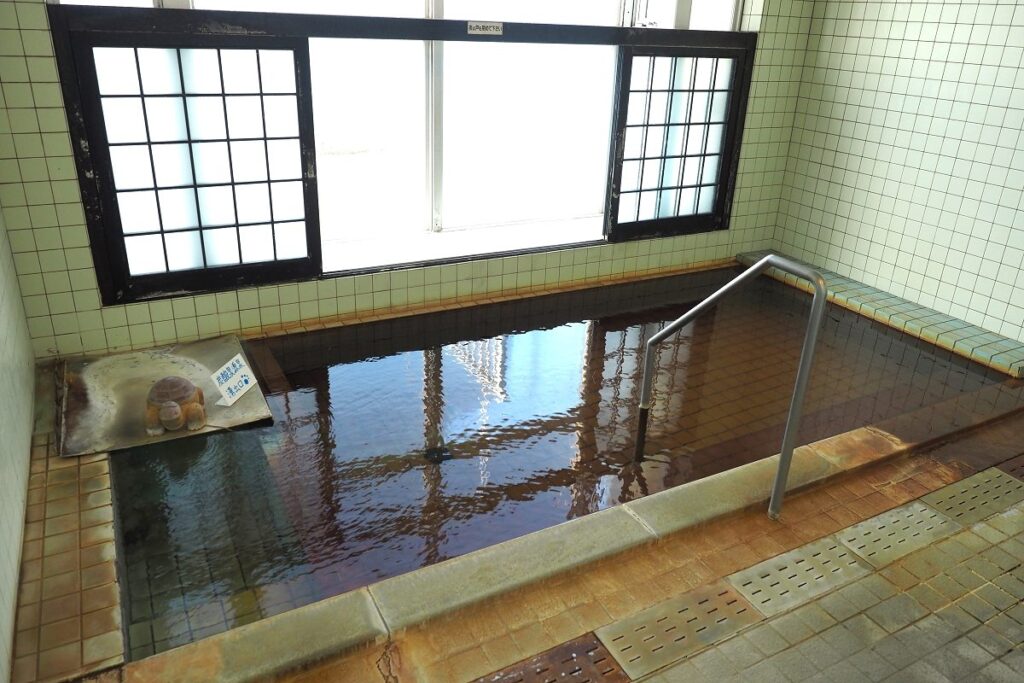 川島旅館では、道内の温泉の中でも際立った特徴がある「天然オイルバス」を宿泊でも日帰りでも楽しむことができます。男女別の大浴場は約34度の源泉そのままの湯船と、適温に加温した湯船、露天風呂の構成。源泉浴槽にはたっぷりと茶色い石油系の湯花が舞い、その油分が肌をやさしく包みます。入浴に使用したタオルや入浴前後に着ていた衣類、肌にも石油の香りが長く残り、豊富温泉から帰った後もその名残を感じることができるほどです。