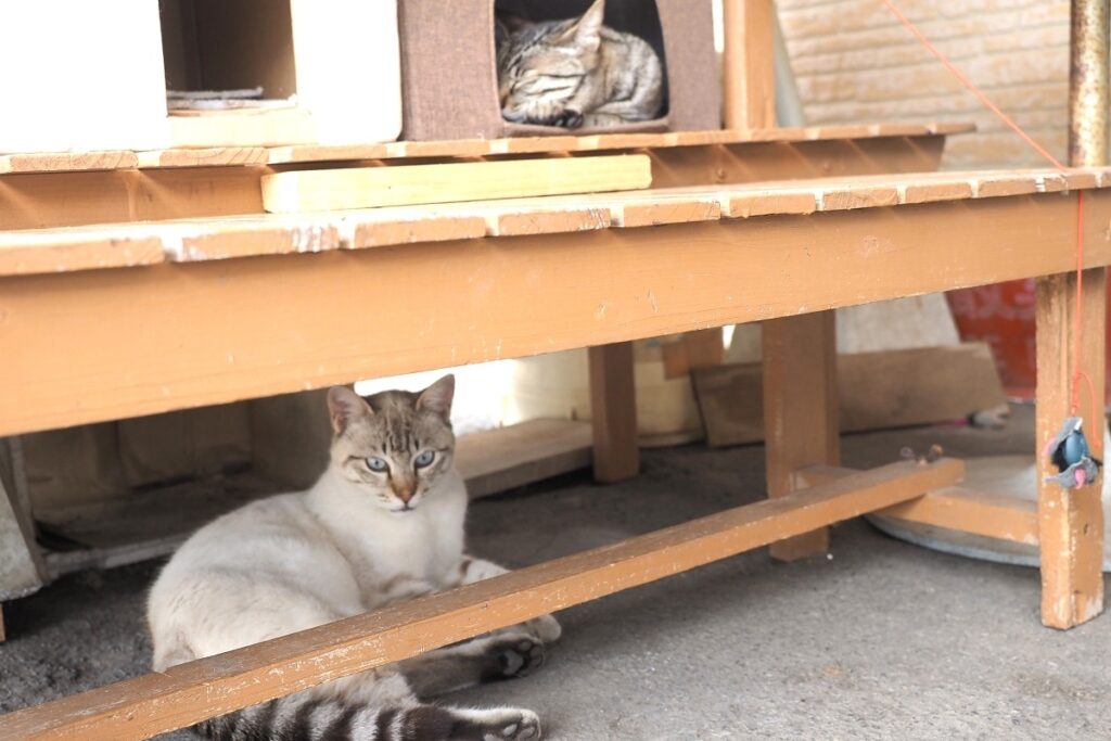 たらこ湯には、こたくん・なみちゃんの2匹の看板猫と看板犬のももちゃんがいます。この3匹は館内で見かけることがありますが、ほかに稀にしかお目にかかれない3匹の保護猫もいます。